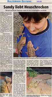 04.08.2005 erschien der nachfolgende Artikel über unsere Bartis. Zum Lesen der Artikel mit der Maus ins Bild klicken.